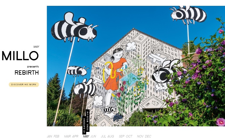 Voor België liet Lavazza z'n oog vallen op Genk. De Italiaanse street artist Millo gebruikte in Genk de blinde gevel van het Heempark als canvas voor een werk dat hij Rebirth (wedergeboorte) doopte. In het Heempark zorgden de bijen voor inspiratie.
