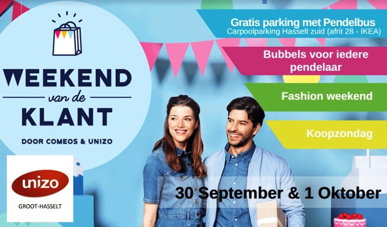 Op 30 september en 1 oktober staat Hasselt in het teken van het Weekend van de Klant en het Fashion Weekend. Tijdens deze tweedaagse verwennen de handelaars hun klanten extra met kortingen, kleine attenties, modeshows en andere animatie. Piekeren over een parkeerplaats hoeft niet volgens UNIZO Hasselt. De ondernemersorganisatie zorgt er voor dat het stadscentrum vlot bereikbaar is met een gratis shopping shuttle.