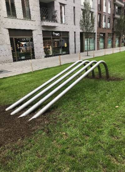 "Het uitzicht van Quartier Bleu leent zich niet helemaal tot een typisch speeltuig dat we meestal terugvinden in een traditionele speeltuin. Daarom kozen we om het klimtuig de Waterval te installeren op het grasveld aan de Stokerijstraat. Het ziet er misschien een beetje koel uit, maar is daarnaast vooral mooi en komt goed tot zijn recht als het alleen staat. Zo lijkt het bijna een kunstobject. De naam van het klimtoestel komt ook mooi overeen met de locatie. De link met het dichtbijgelegen kanaal is snel gelegd. Met een maximale valhoogte van 55cm houden we het klim- en glijplezier ook veilig."