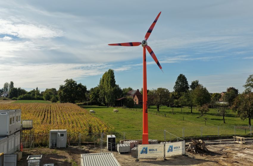 In Limburg: Eerste mobiele windmolen op bouwplaats in ons land staat in Diepenbeek (7 oktober 2025)
