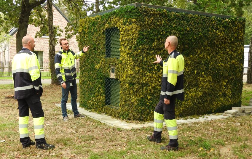 De mosmuren bieden een duurzame oplossing voor de meer dan noodzakelijke extra elektriciteitscabines die Fluvius de komende jaren plaatst.