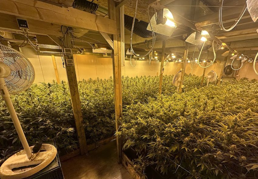 In de woning trof de politie een professionele cannabisplantage in drie kweekruimtes aan, goed voor 932 planten. In twee ruimtes stonden oogstrijpe cannabisplanten, de andere ruimte was voorzien van de nodige installaties voor de teelt van cannabis zoals o.a. transformatoren, groeimiddelen, bloempotten en potgrond. Om de installatie van elektriciteit en water te voorzien werd gebruik gemaakt van illegale aftakkingen. De installaties werden ontmanteld en vernietigd door de Civiele Bescherming.